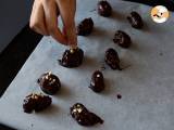 Passato questo tempo, sciogliete il cioccolato fondente in una ciotola e tuffateci dentro i datteri (uno per volta)
