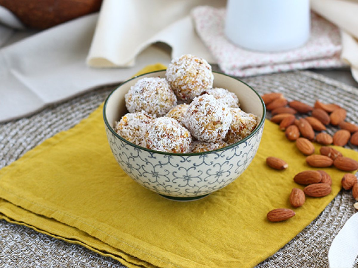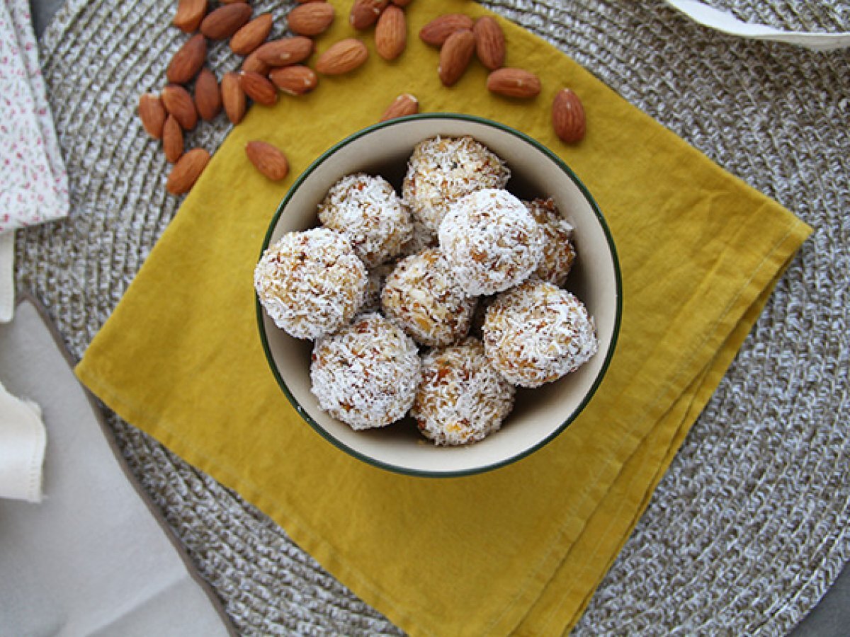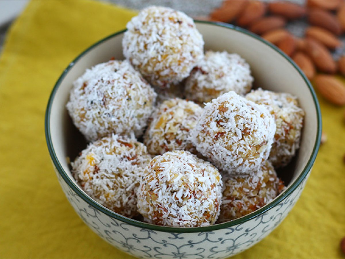 Energy ball all'albicocca, té verde e cocco