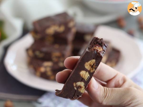 Togliete dal frigo e tagliate a pezzi. I fudge cioccolato e nocciola sono pronti!
