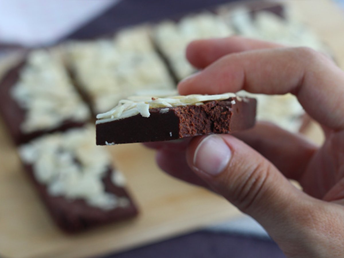Dei piccoli quadrati di cioccolato per rendere la pausa caffè ancora più golosa. Vi serviranno solo 4 ingredienti per preparare questa versione vegana e senza glutine. Provatela subito, può mangiarla davvero chiunque!
