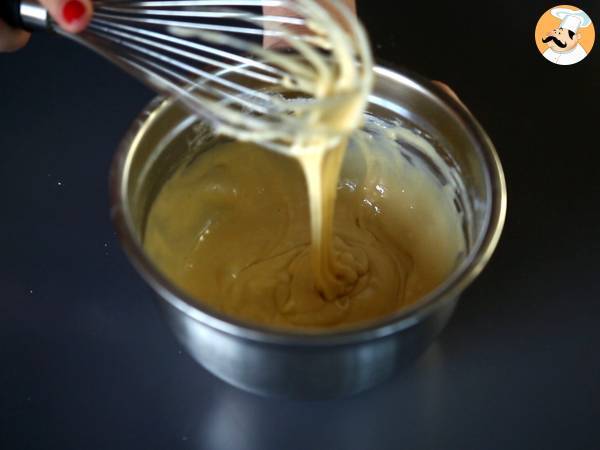 Versate metà del latte nel composto uova+zucchero+maizena, mescolate per bene poi versate tutto nel pentolino e rimettete sul fuoco.