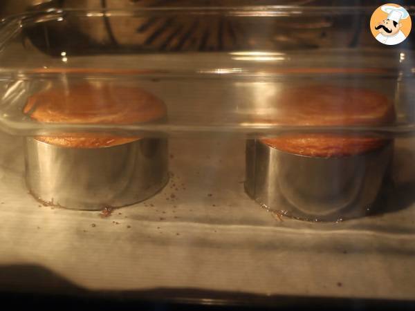 Spennellate le girelle di sfoglia con l'uovo sbattuto, poi spolverate la superficie con lo zucchero di canna. Sistemate i coppapasta imburrati attorno le girelle, poi coprite il tutto con una pirofila (deve essere abbastanza alta da non toccare i coppapasta)