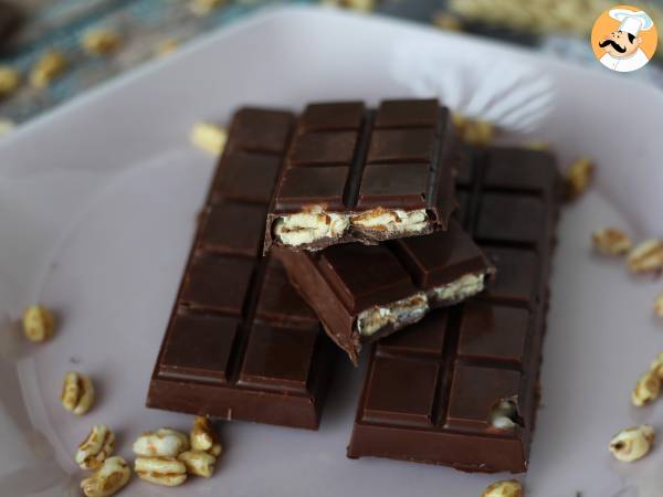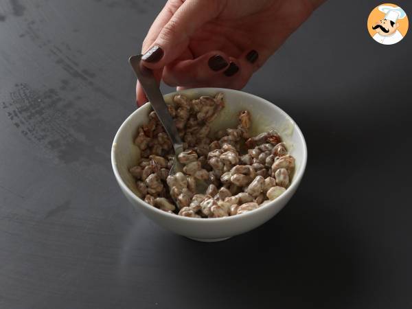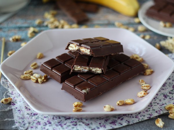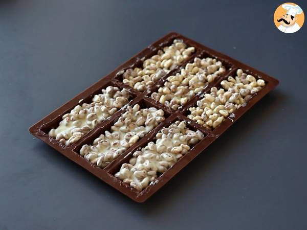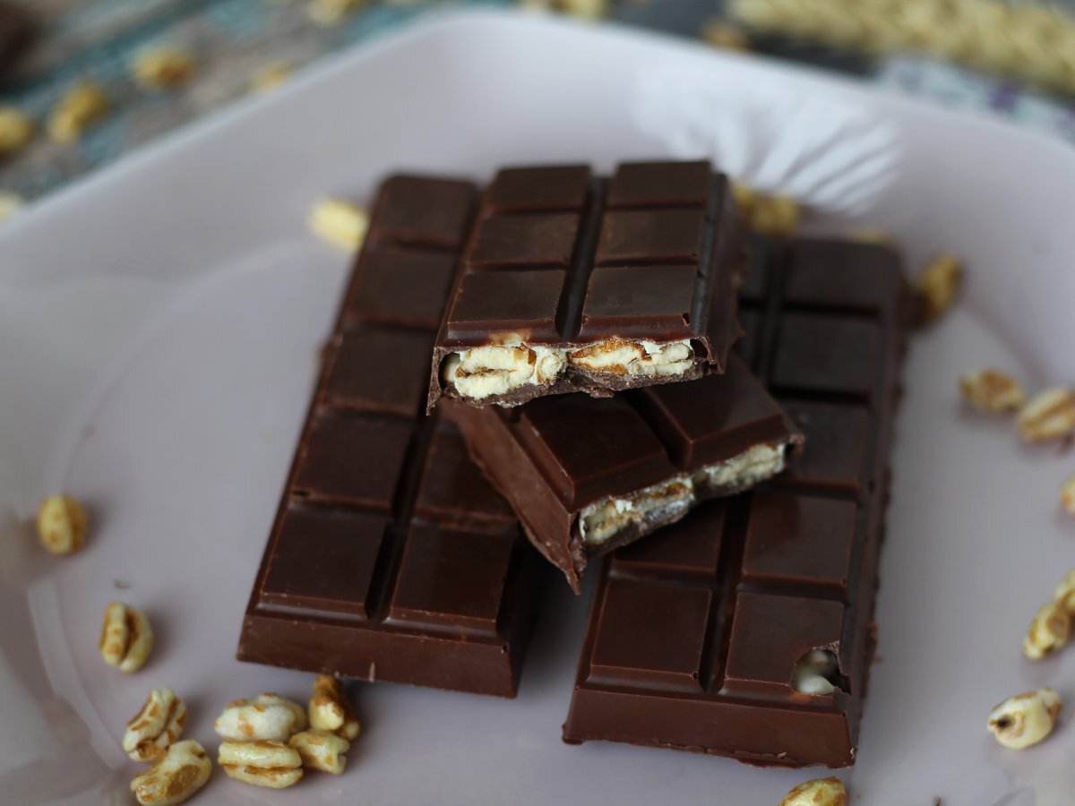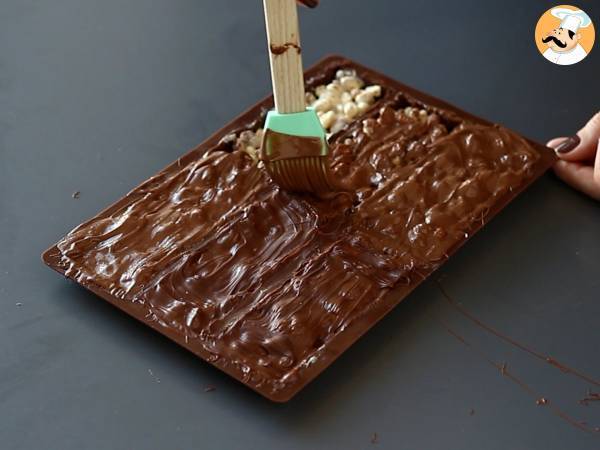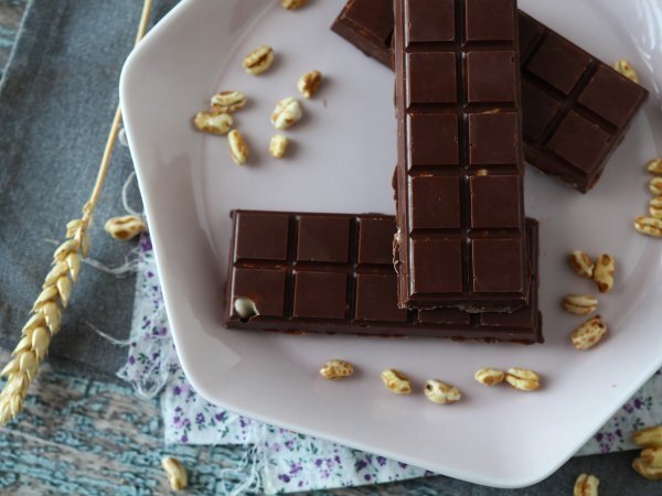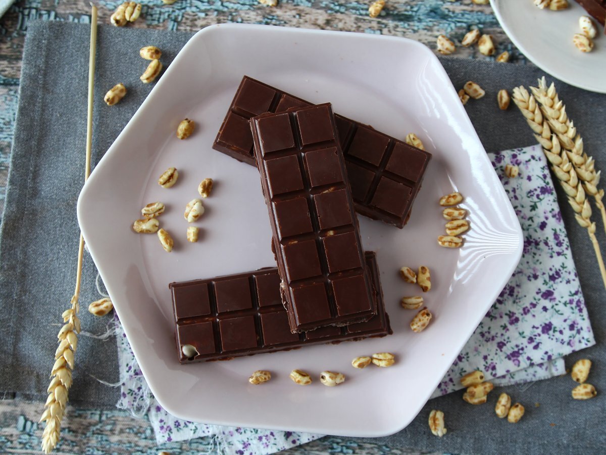 Sciogliete nuovamente il cioccolato al latte e spennellatelo sui cereali soffiati. Lasciate riposare in frigorifero per almeno 20 minuti.
