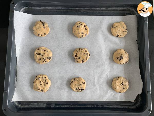 Su una teglia coperta di carta forno disporre l'impasto dei cookies formando dei piccoli cerchi di circa 5 cm di diametro.