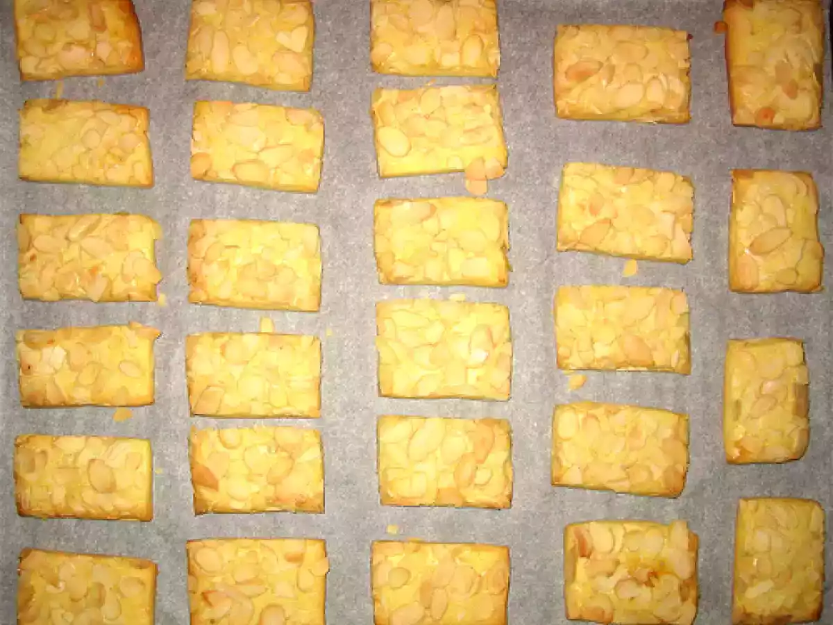 L'abbinamento con le scaglie di mandorle "incollate " con l'albume e il bagno parziale nel cioccolato fondente, danno un tocco particolare a questi biscottini, non esageratamente dolci ma molto ricchi e scenici.