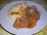 Ingredienti: 400 g di polpa di asino 2 cipolle bianche 1 bicchiere di vino rosso corposo sale pepe 1 cucchiaio di paprica dolce 5 o 6 patate medie olio...