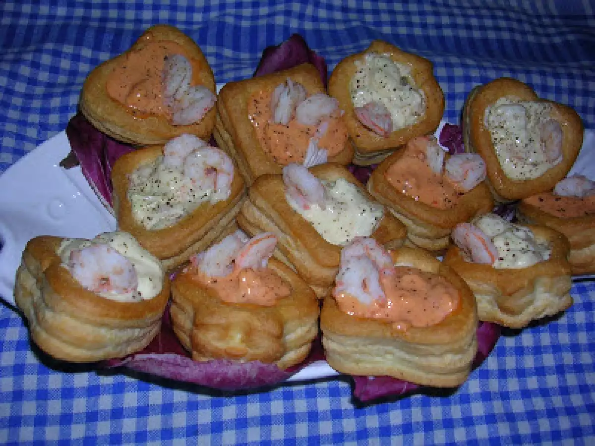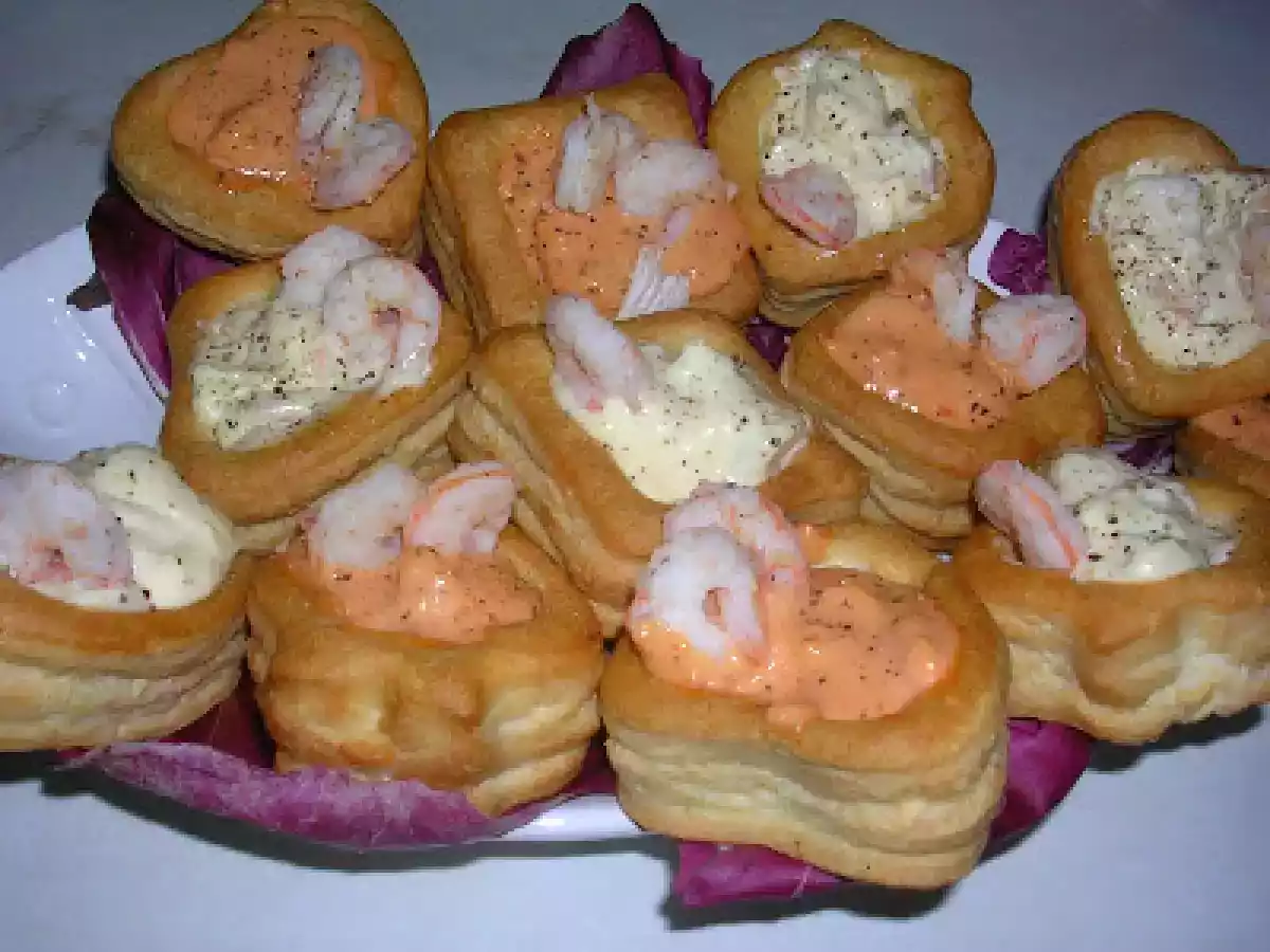 Antipasto sfizioso PrecedenteProssimo Stuzzicheriefacile45 min Invia questa ricetta ad un amico Stampa la ricetta Contatta l'autore della Ricetta Pubblica la foto di questa ricetta Ingredienti 4 Una confezione di voul au vant maionese ketchup gamberetti pepe qualche foglia di radicchio per decorare