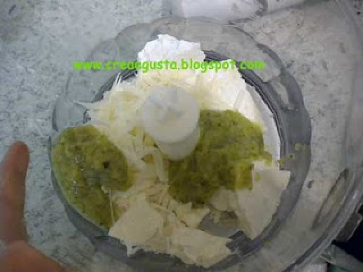 - Nel frattempo preparate la crema frullando il formaggio con gli altri ingredienti. Se risulta troppo duro aggiungete un goccio di latte.