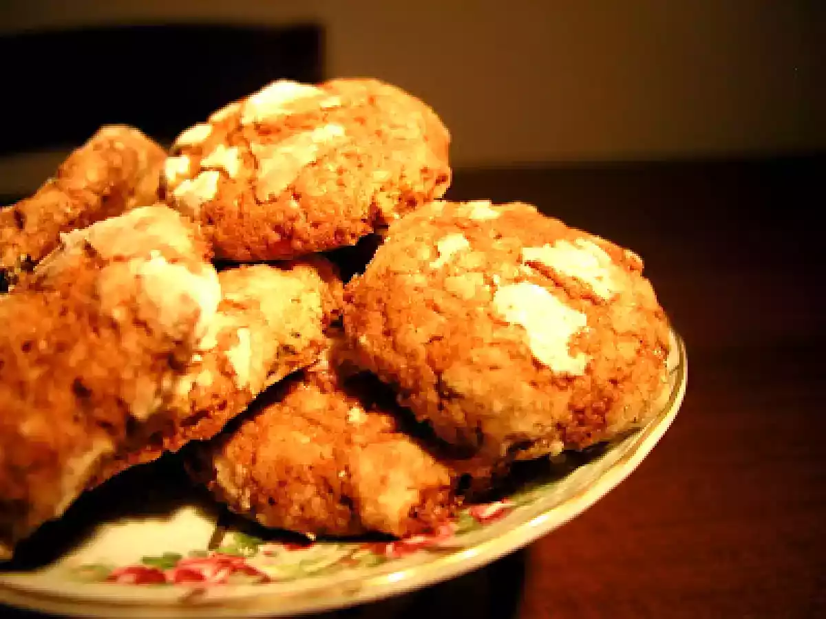 Biscotti integrali alle noci e saba Stuzzicheriefacile40 min Invia questa ricetta ad un amico Stampa la ricetta Contatta l'autore della Ricetta Pubblica la foto di questa ricetta Ingredienti 4 100 g farina 00 80 g farina integrale 85 g burro morbido 1 uovo grande 2 o 3 cucchiai saba 50 g gherigli di noce 20 g uvetta 20 g mirtilli rossi secchi 50 g zucchero di canna 50 g zucchero semolato 8 g lievito vanigliato un pizzico di sale zucchero a velo