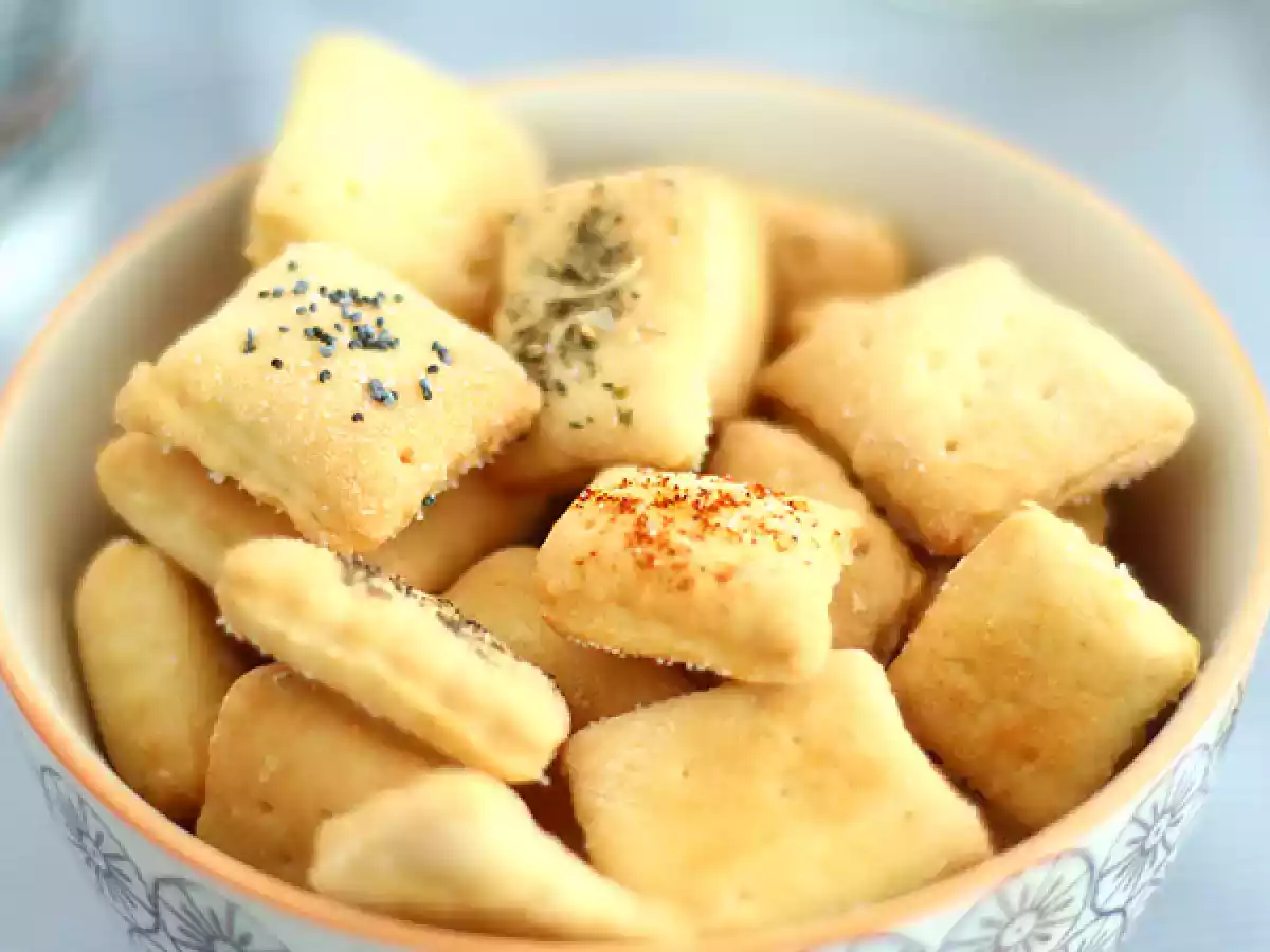 Puoi variare le spezie e i semi utilizzati per condire i biscotti: pepe nero, paprika, semi di sesamo, semi di papavero e rosmarino sono ottime scelte, ma puoi sperimentare con altre erbe aromatiche o spezie a tuo piacimento.