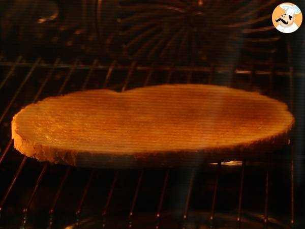 Ora mettete il forno in modalità grill a 230°C e grigliate la bruschetta per 5 minuti. Potete anche usare del pane tradizionale spennellato con olio d'oliva