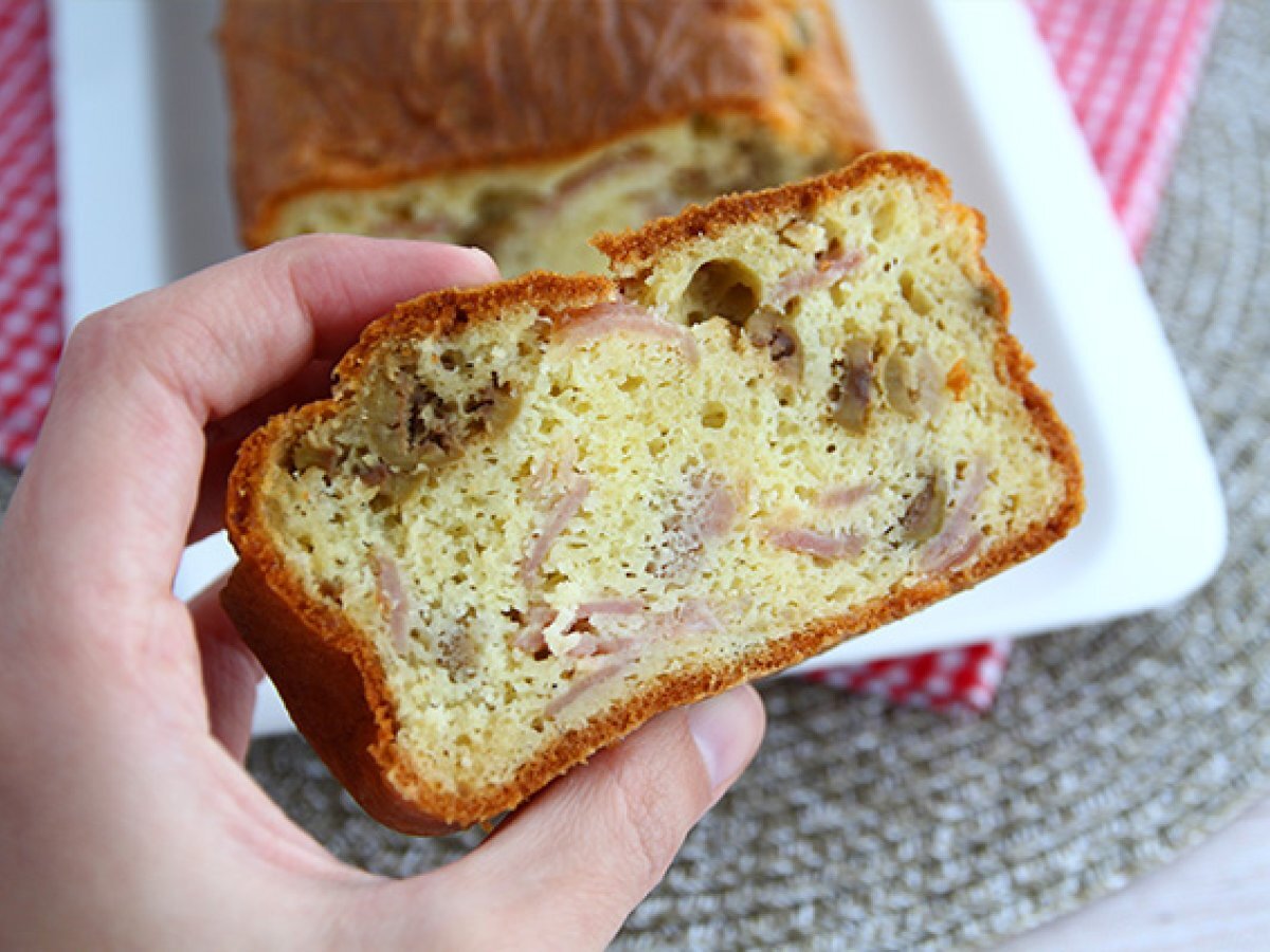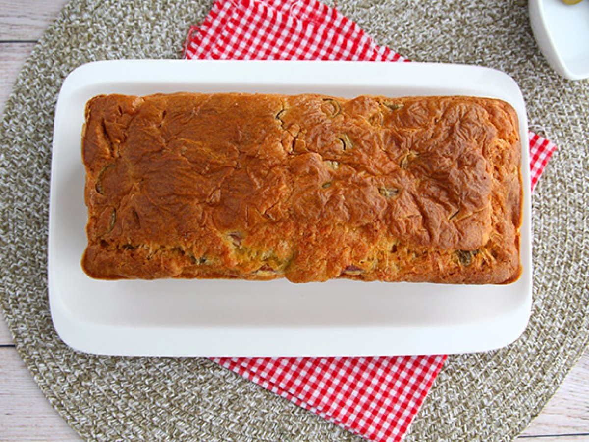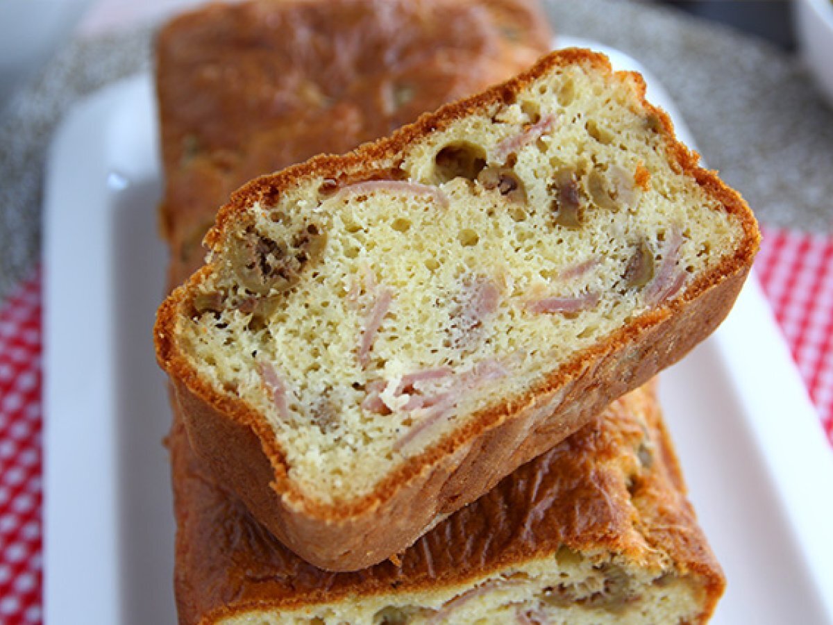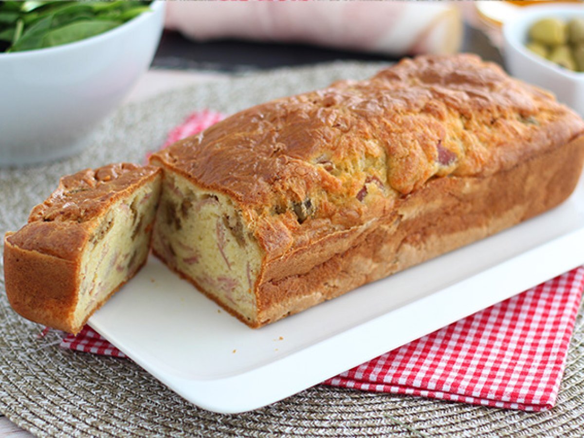 Cake salato: prosciutto cotto, emmental e olive verdi
