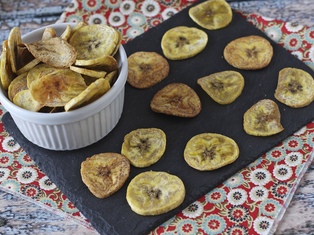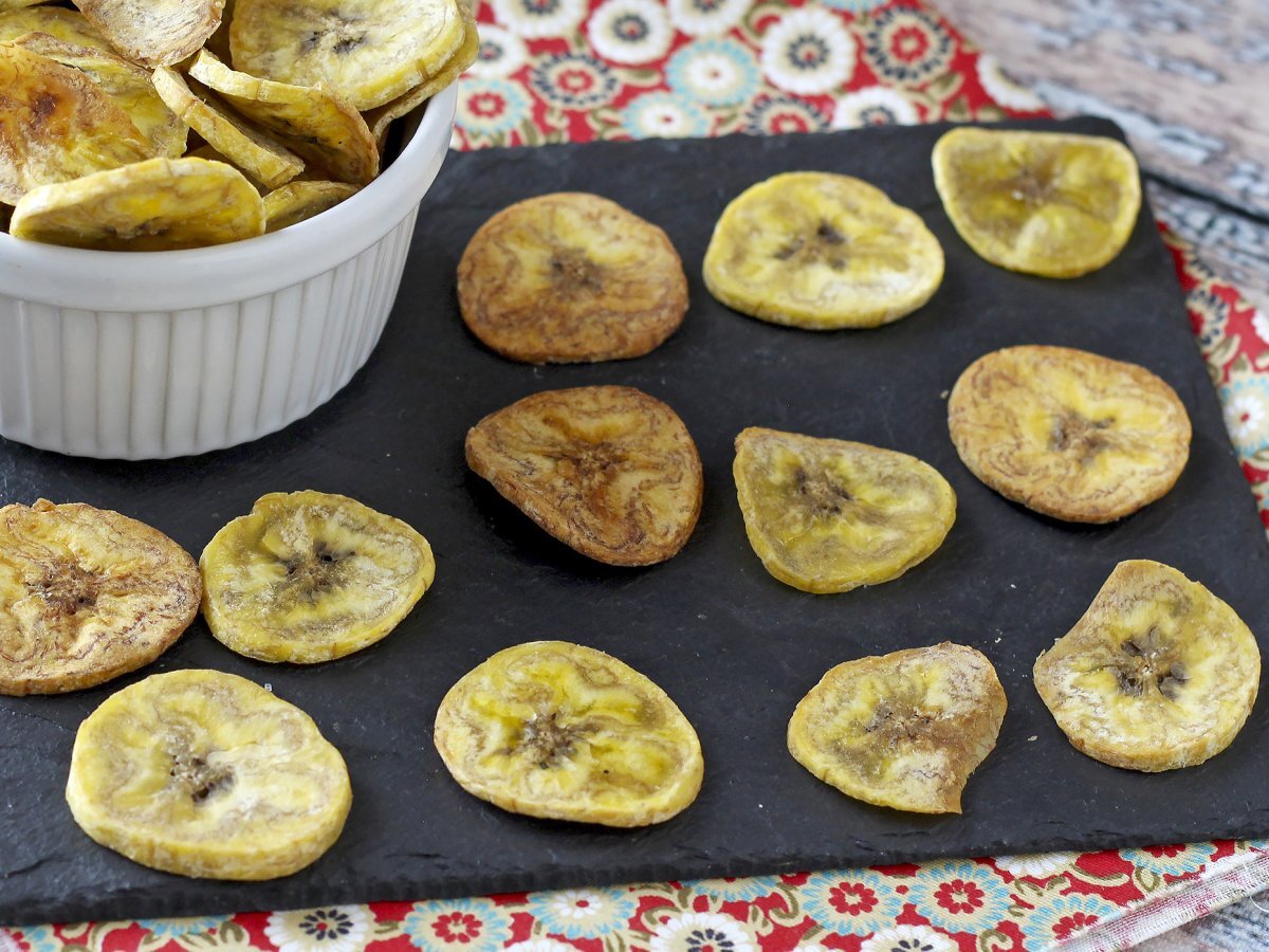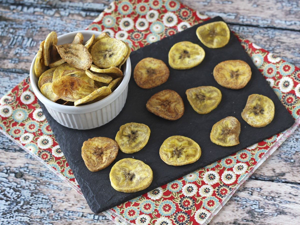 Quando cerchiamo un'alternativa ai tradizionali aperitivi, senza voler passare troppo tempo in cucina, pensiamo subito a preparare le sfiziose chips di banane cotte al forno. La ricetta è semplicissima e vi serviranno pochi ingredienti. Siete pronti a sgranocchiare questa sfiziosa idea? Non esitate ad accompagnarla con un ottimo drink alcolico (senza esagerare) oppure analcolico