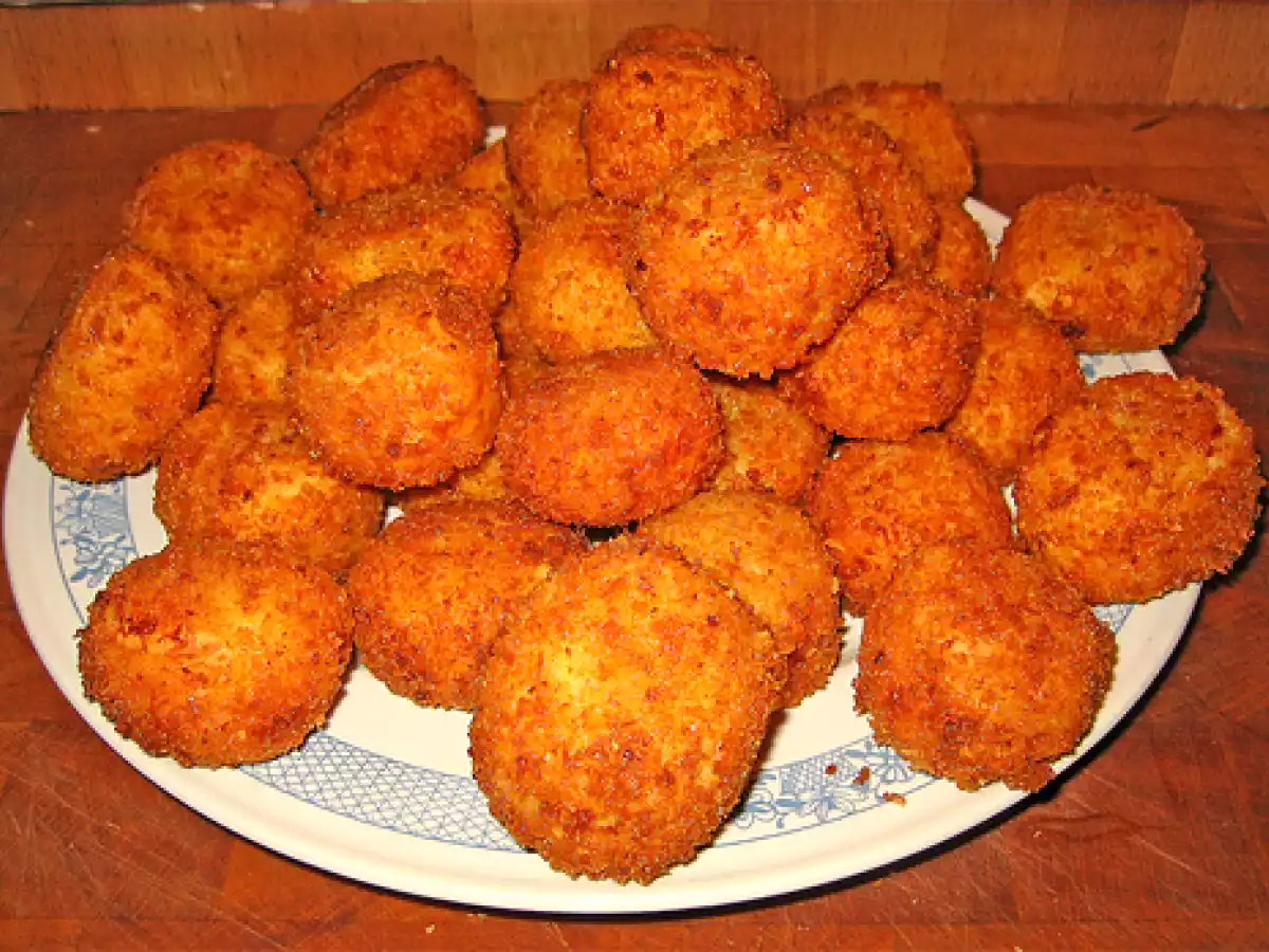 Crocchette di mortadella e patate PrecedenteProssimo Stuzzicheriefacile50 min1185 Kcal Invia questa ricetta ad un amico Stampa la ricetta Contatta l'autore della Ricetta Pubblica la foto di questa ricetta Ingredienti 4 500 g di patate da gnocchi 1 pizzico di sale grosso 200 g di mortadella tritata 80 g di grana grattugiato sale fino e noce moscata a piacere 2 uova fresche Per la panatura: 100 g di farina 500 g di pangrattato 3 uova 1/2 bicchiere di latte sale Strutto per la friggere Costo stimato: 7.6Euros€ (1.9€/Porzioni)