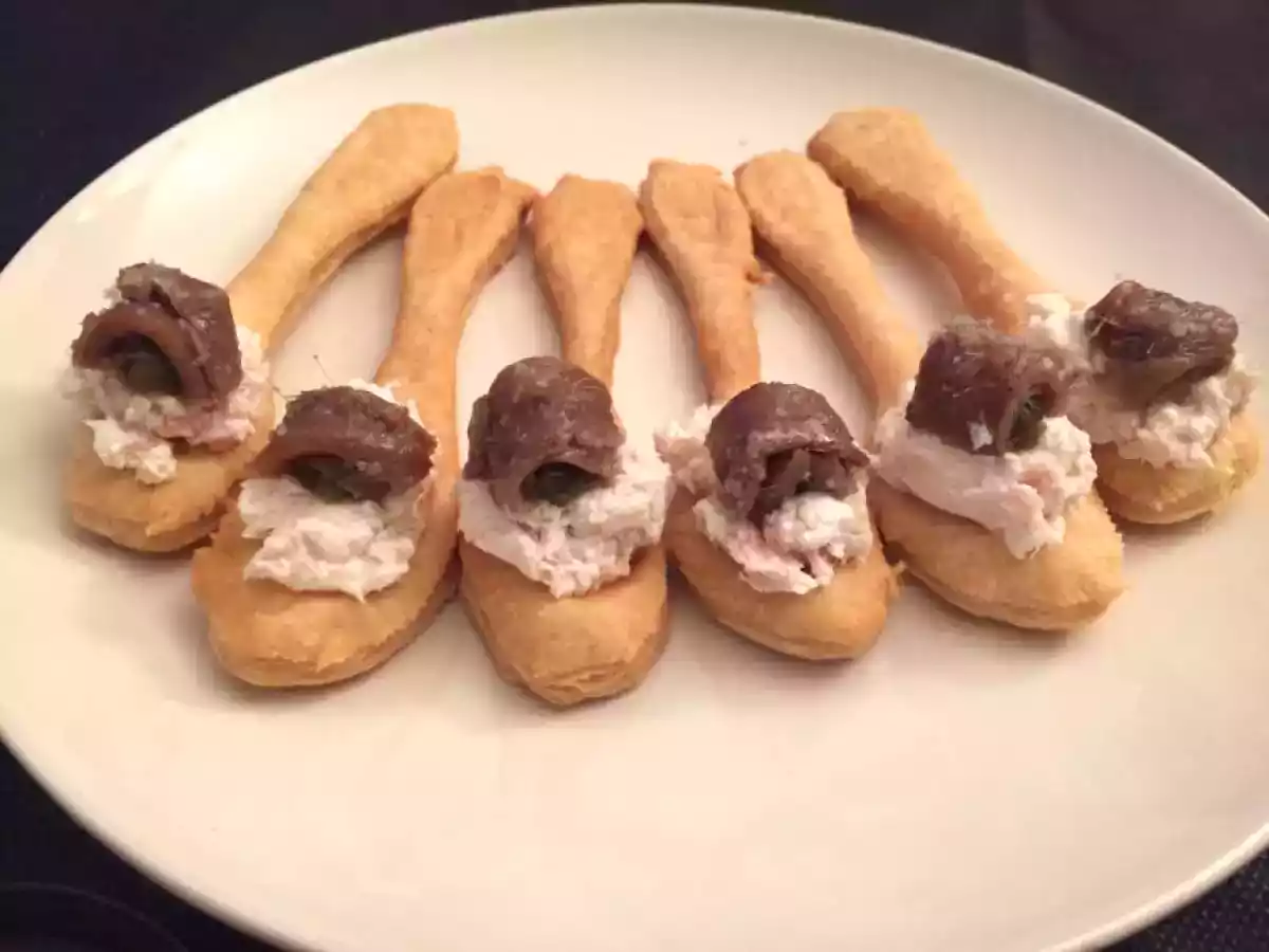 Semplice prepararli, non serve nulla in particolare, solo dei cucchiaini di acciaio per intagliare le sagome. E per la farcitura ? Spazio alla fantasia, io ho scelto di preparare una crema a base di Philadelphia e tonno, come decorazione acciughe ripiene di capperi.