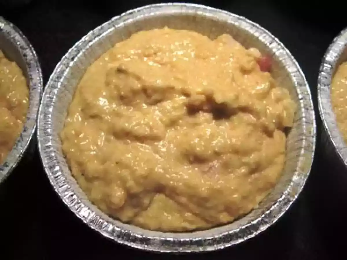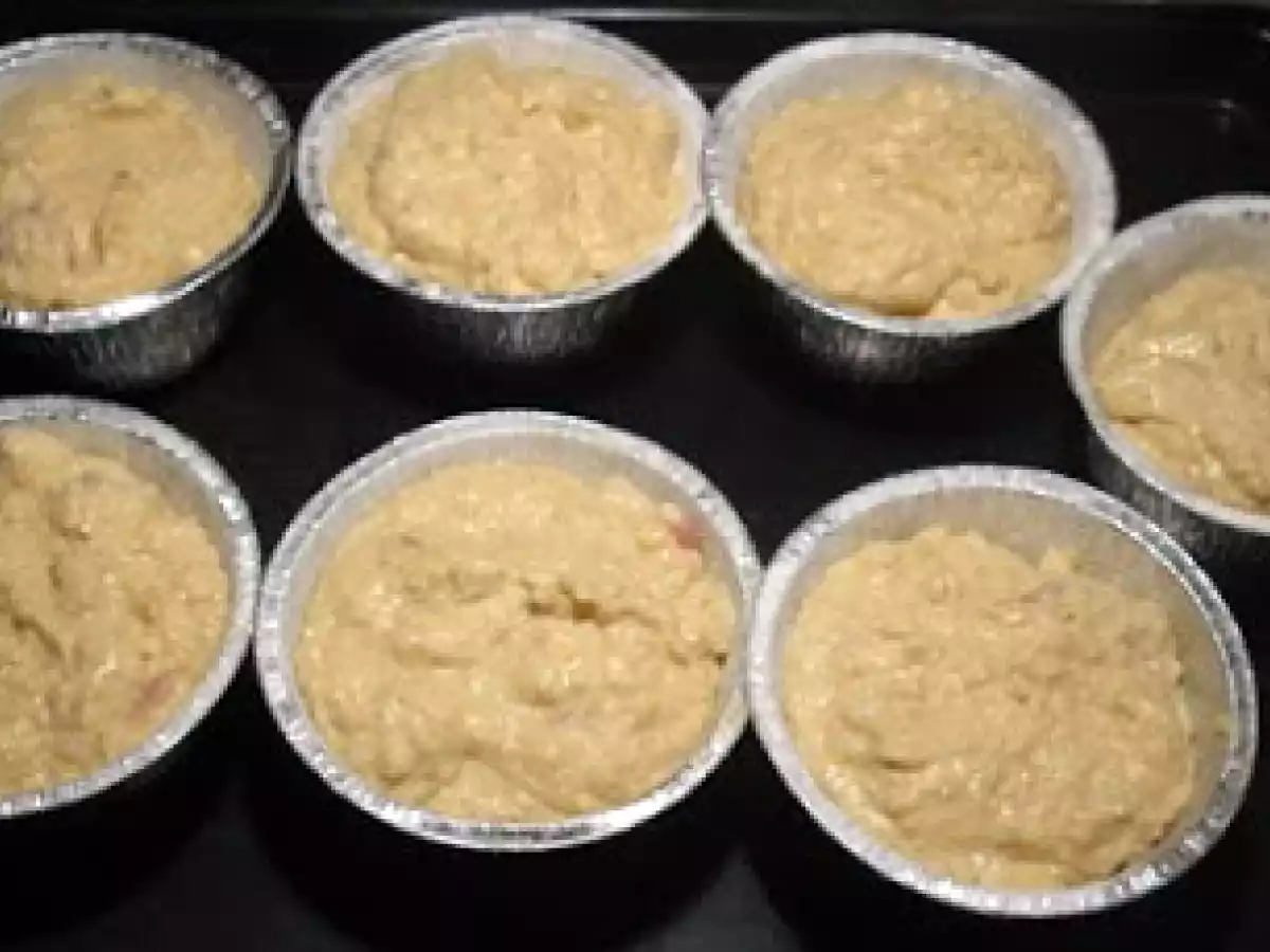 - Mescolare con cura il tutto e trasferire a cucchiaiate in stampini usa e getta debitamente imburrati ed infarinati.