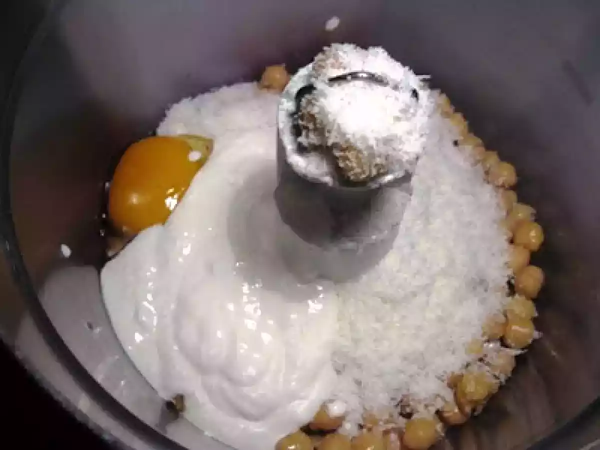 Per chi volesse prepararli da sé deve metterli a bagno almeno 24 ore prima con un poco di sale ma siccome a me non vengono mai molto bene o me li faccio regalare da mia madre o uso quelli già pronti. - Versare nel bicchiere del mixer i ceci, le uova, il pecorino, la panna e azionare il robot fino a quando si ottiene un composto omogeneo quindi qualche secondo.