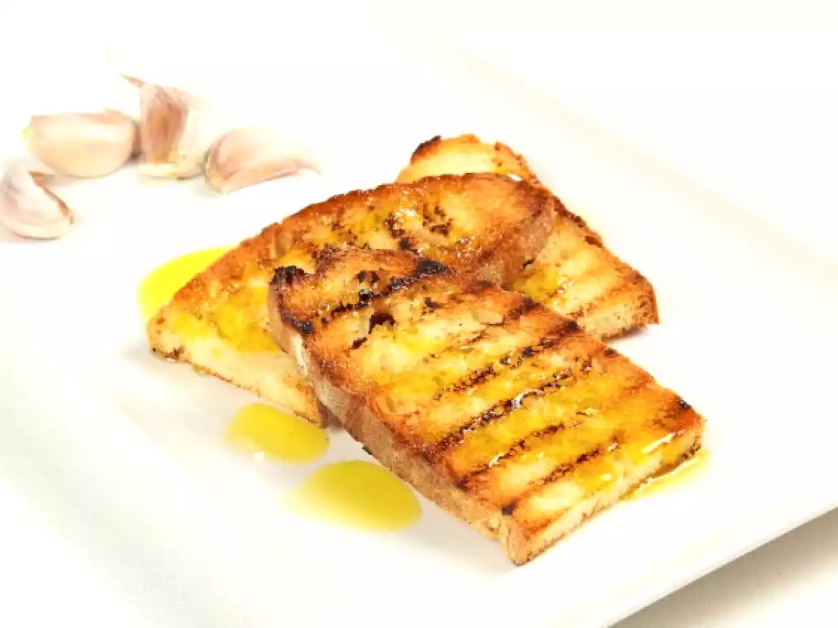 - Sfregare con uno spicchio d'aglio, cospargere con abbondante olio extravergine d'oliva, un pizzico di sale e di pepe macinato al momento.