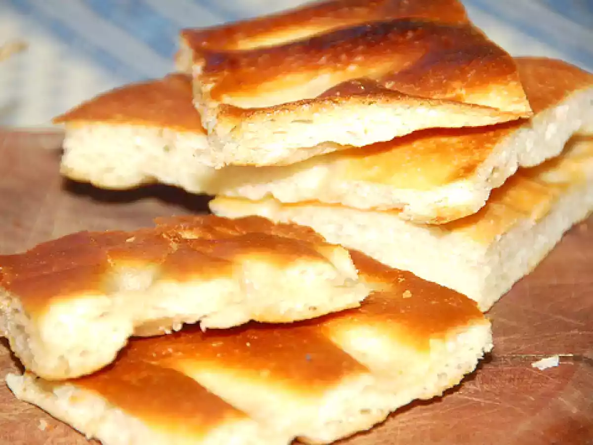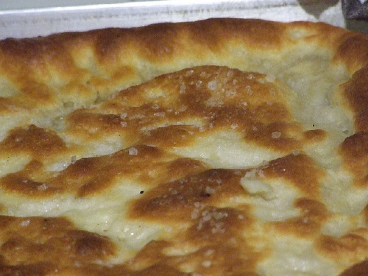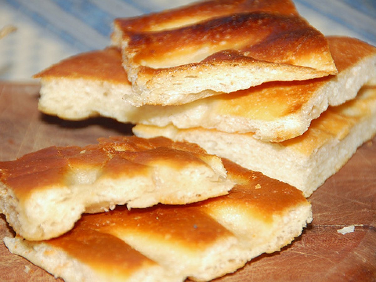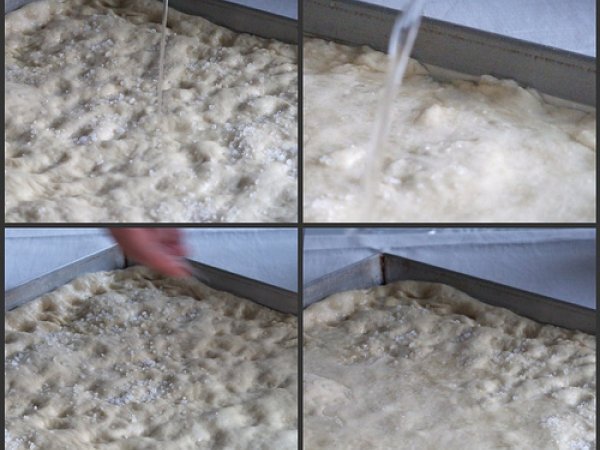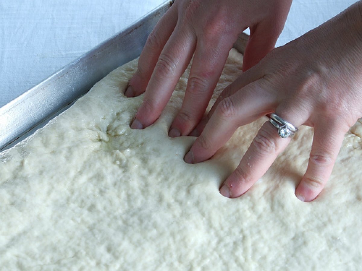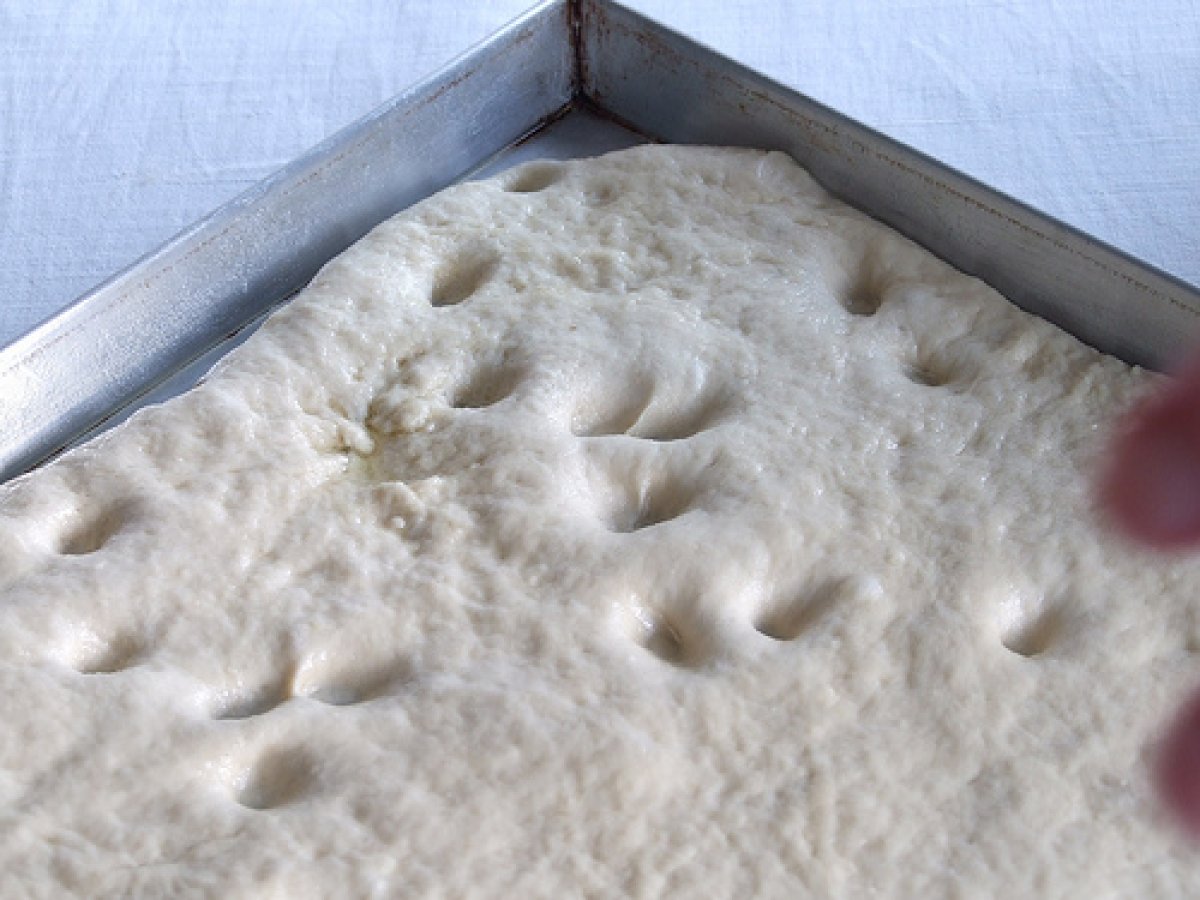 Focaccia alla genovese- quella vera, senza tante storie PrecedenteProssimo Stuzzicheriefacile45 min Invia questa ricetta ad un amico Stampa la ricetta Contatta l'autore della Ricetta Pubblica la foto di questa ricetta Un'ottima ricetta per preparare la vera focaccia genovese! Ingredienti 4 500 g di farina 250 g di acqua 20 g di lievito fresco 2 o 3 cucchiai di olio EVO sale olio EVO- almemno mezzo bicchiere sale grosso acqua
