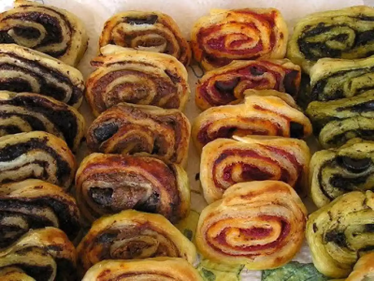 Girelle di sfoglia millegusti Stuzzicheriefacile35 min38 Kcal Invia questa ricetta ad un amico Stampa la ricetta Contatta l'autore della Ricetta Pubblica la foto di questa ricetta Ingredienti 2 pasta d'acciughe concentrato di pomodoro paté di olive Costo stimato: 0.65Euros€ (0.33€/Porzioni)