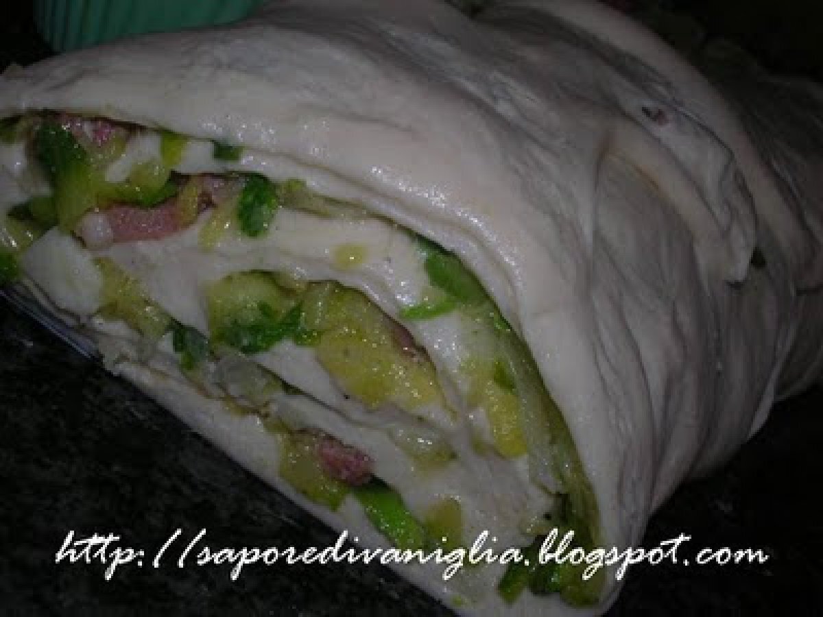 Girelle salate con pancetta e zucchine PrecedenteProssimo Stuzzicheriefacile2 h 20 m Invia questa ricetta ad un amico Stampa la ricetta Contatta l'autore della Ricetta Pubblica la foto di questa ricetta Ingredienti 4 PASTA X PIZZA: 1 lievito di birra 25 g 600 g farina 00 150 g farina manitoba 350 g di acqua 100 g latte 1 pizzico di zucchero 30 g di olio 15 g sale RIPIENO: 1 kg di zucchine 2 scalogni 250 g di pancettaa dadini 300 g di provola affumicata o scamorza 100 g parmigiano