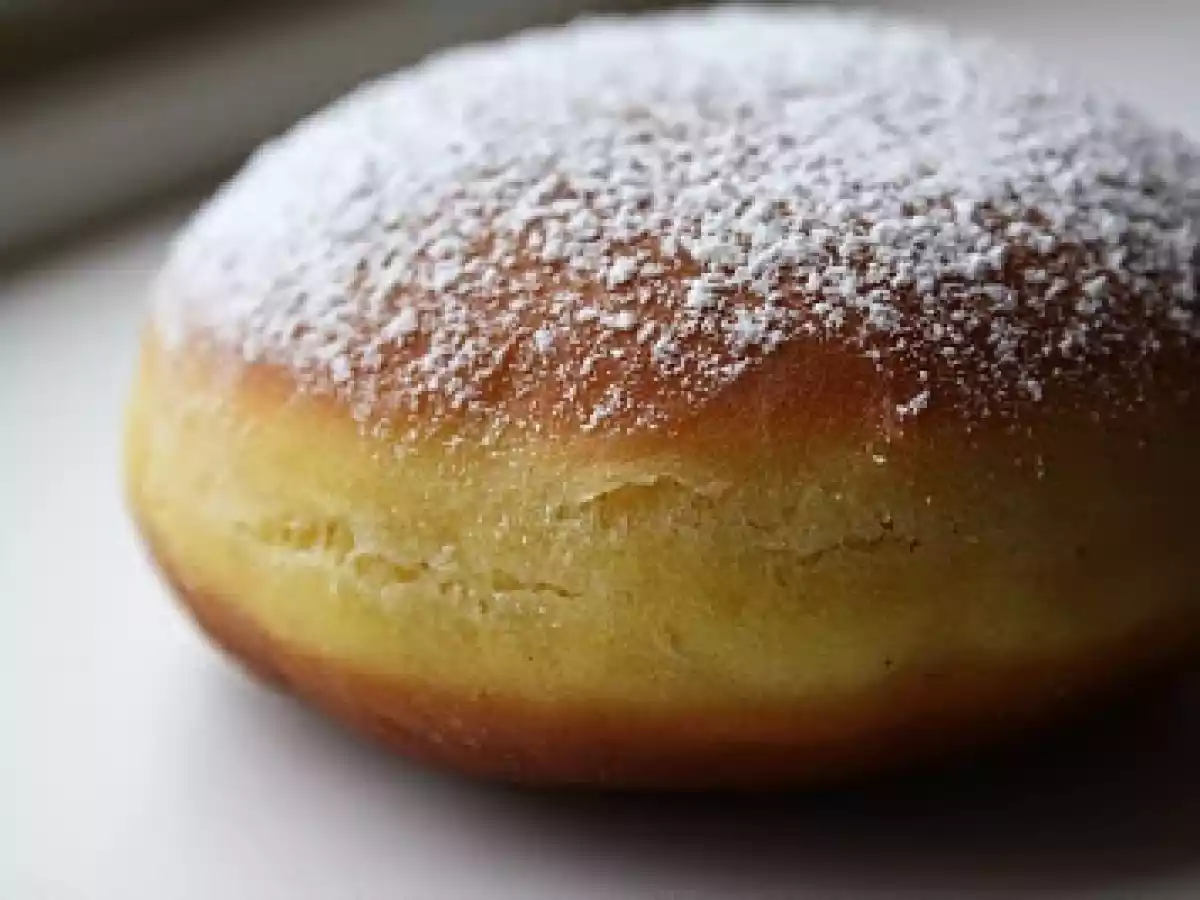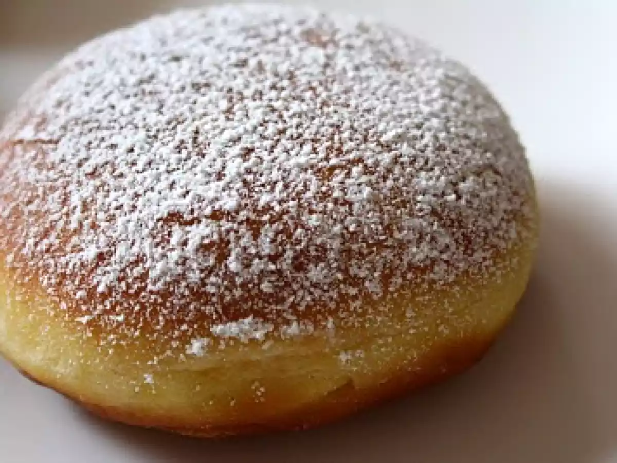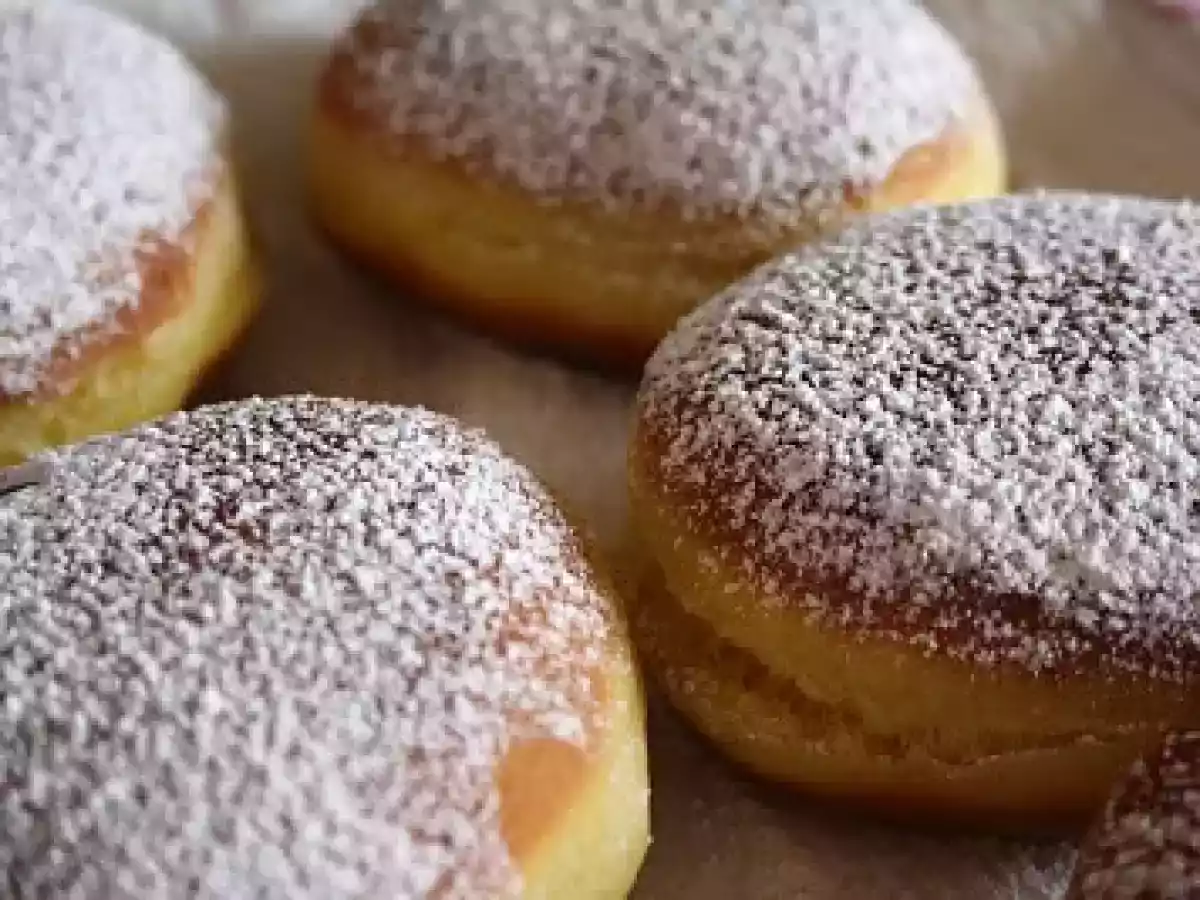 Krapfen (o bomboloni) PrecedenteProssimo Stuzzicheriefacile50 min Invia questa ricetta ad un amico Stampa la ricetta Contatta l'autore della Ricetta Pubblica la foto di questa ricetta Ingredienti 6 500 g di farina 00 10 g di lievito di birra secco per panetteria 3 uova + 2 tuorli 80 g di burro fuso tiepido 50 ml + 50 ml di acqua tiepida 100 g di zucchero + 1 cucchiaino per attivare il lievito 1 cucchiaino di estratto di vaniglia 1/2 cucchiaino di sale qualche cucchiaio di latte 100 g di confettura di albicocca olio di semi per friggere zucchero a velo per decorare