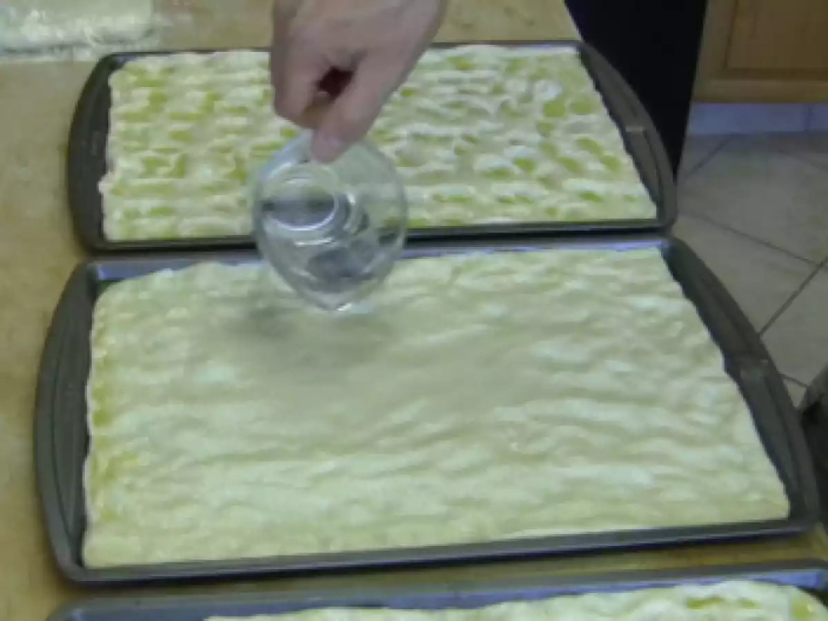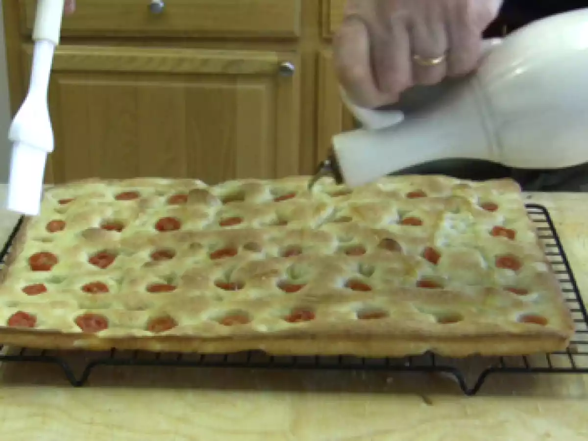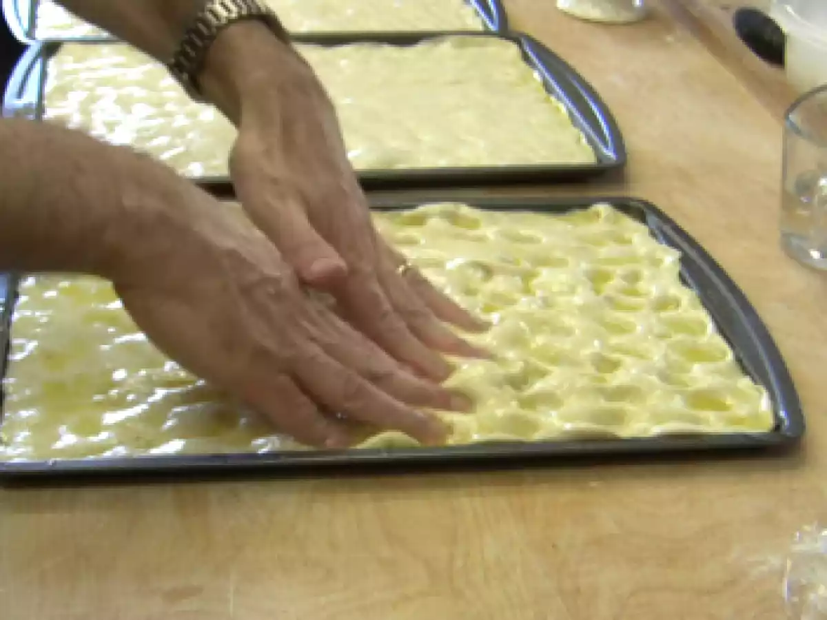La video ricetta della focaccia genovese PrecedenteProssimo Stuzzicheriemedia3 h 20 m322 Kcal Invia questa ricetta ad un amico Stampa la ricetta Contatta l'autore della Ricetta Pubblica la foto di questa ricetta Ingredienti 6 300 g Acqua a temperatura ambiente 35 g Olio Extra Vergine di Oliva 12 g Sale 1 cucchiaino da caffe’ di Malto 460 g di Farina 1 cubetto di lievito di birra Costo stimato: 0.71Euros€ (0.12€/Porzioni)
