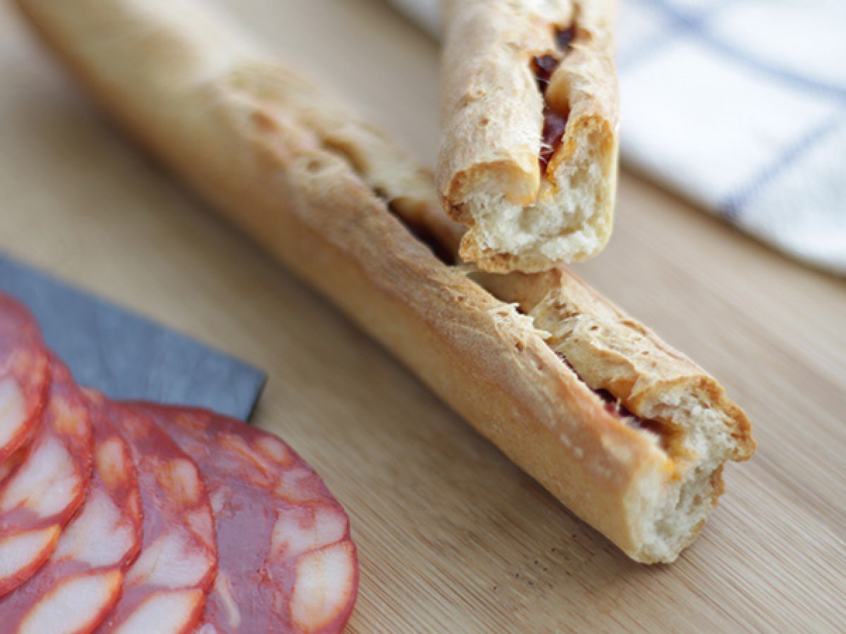 Adesso mettete sulle strisce di pasta dei pezzetti di chorizo, poi chiudete i bordi. Infine, per renderli uniformi, fateli rollare su un piano infarinato.
