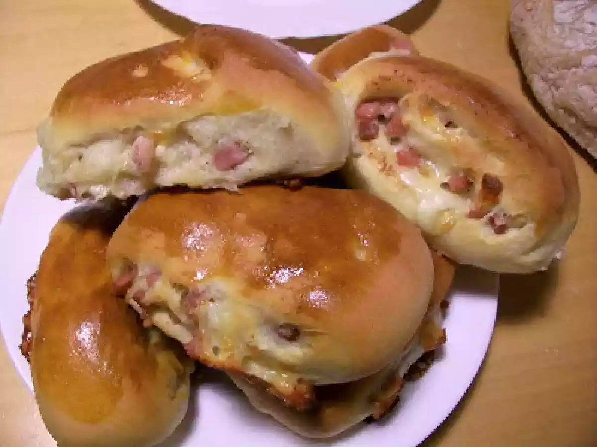 Panini napoletani fatti in casa PrecedenteProssimo Stuzzicheriefacile3 h 30 m Invia questa ricetta ad un amico Stampa la ricetta Contatta l'autore della Ricetta Pubblica la foto di questa ricetta Ingredienti 6 500 g di farina 1 cubetto di lievito di birra fresco 1 cucchiaino abbondante di miele 1 cucchiaino di sale 1 uovo 1 cucchiaio di minestra abbondante di strutto pepe 250-270 ml di acqua e latte Per farcire: 100 g di galbanino a cubetti 100 g di pancetta a cubetti 100 g di prosciutto cotto formaggio grattugiato 1 uovo per spennallare.