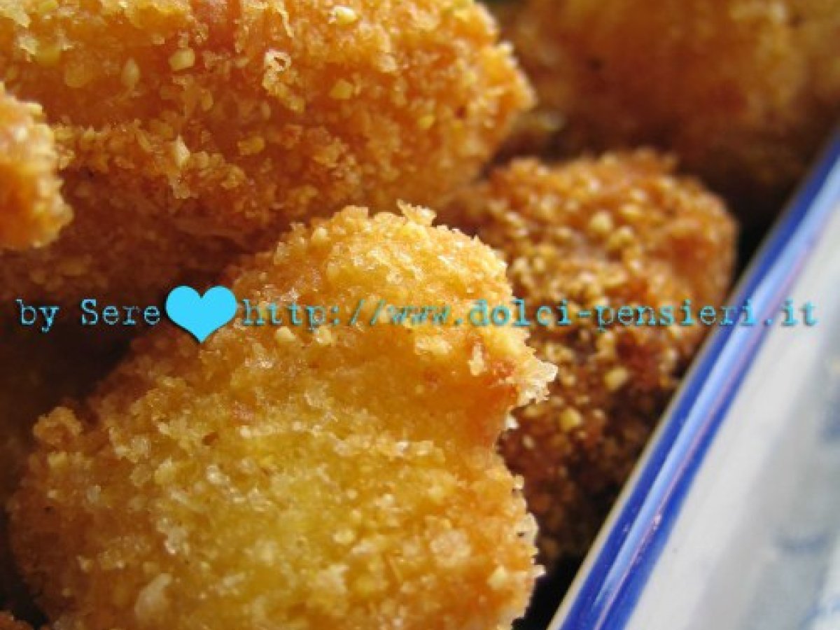 Ricotta salata fritta secondo ?dolcipensieri? PrecedenteProssimo Stuzzicheriefacile40 min Invia questa ricetta ad un amico Stampa la ricetta Contatta l'autore della Ricetta Pubblica la foto di questa ricetta Ingredienti 4 un pezzo di ricotta salata stagionata sarda 1 uovo sale pan grattato farina gialla olio di semi di mais Costo stimato: 1.8Euros€ (0.45€/Porzioni)