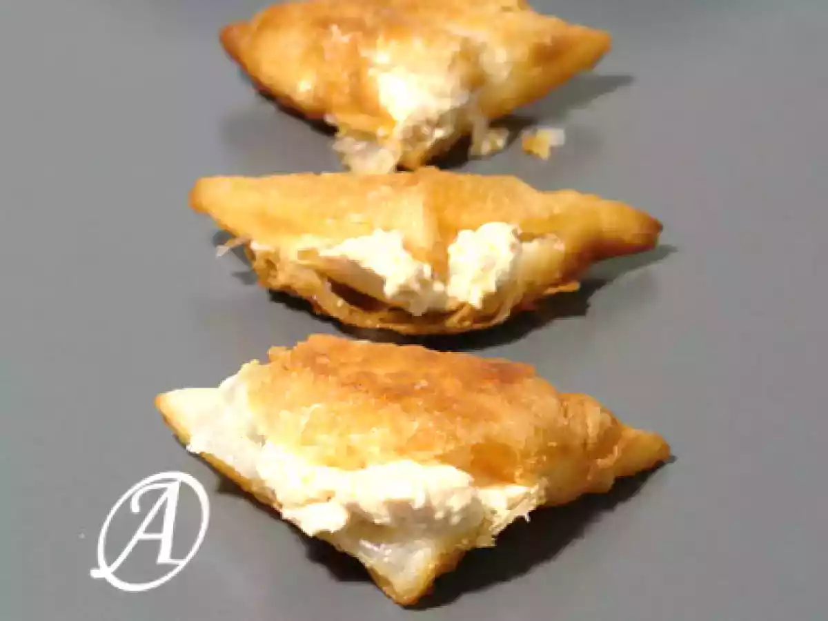 Sfoglia fritta ripiena PrecedenteProssimo Stuzzicheriefacile30 min322 Kcal Invia questa ricetta ad un amico Stampa la ricetta Contatta l'autore della Ricetta Pubblica la foto di questa ricetta Ingredienti 4 pasta sfoglia olio per friggere crema formaggio Costo stimato: 1.22Euros€ (0.31€/Porzioni)