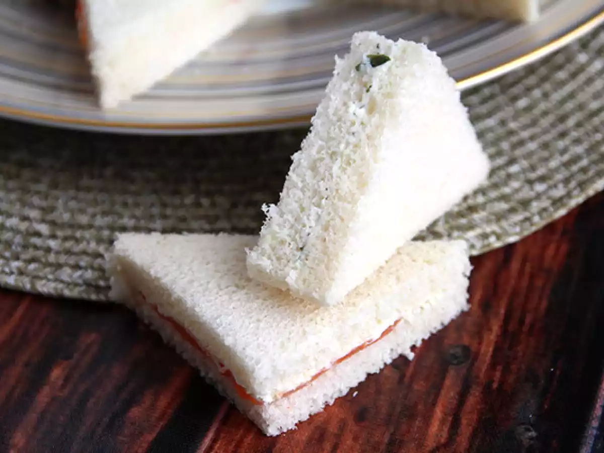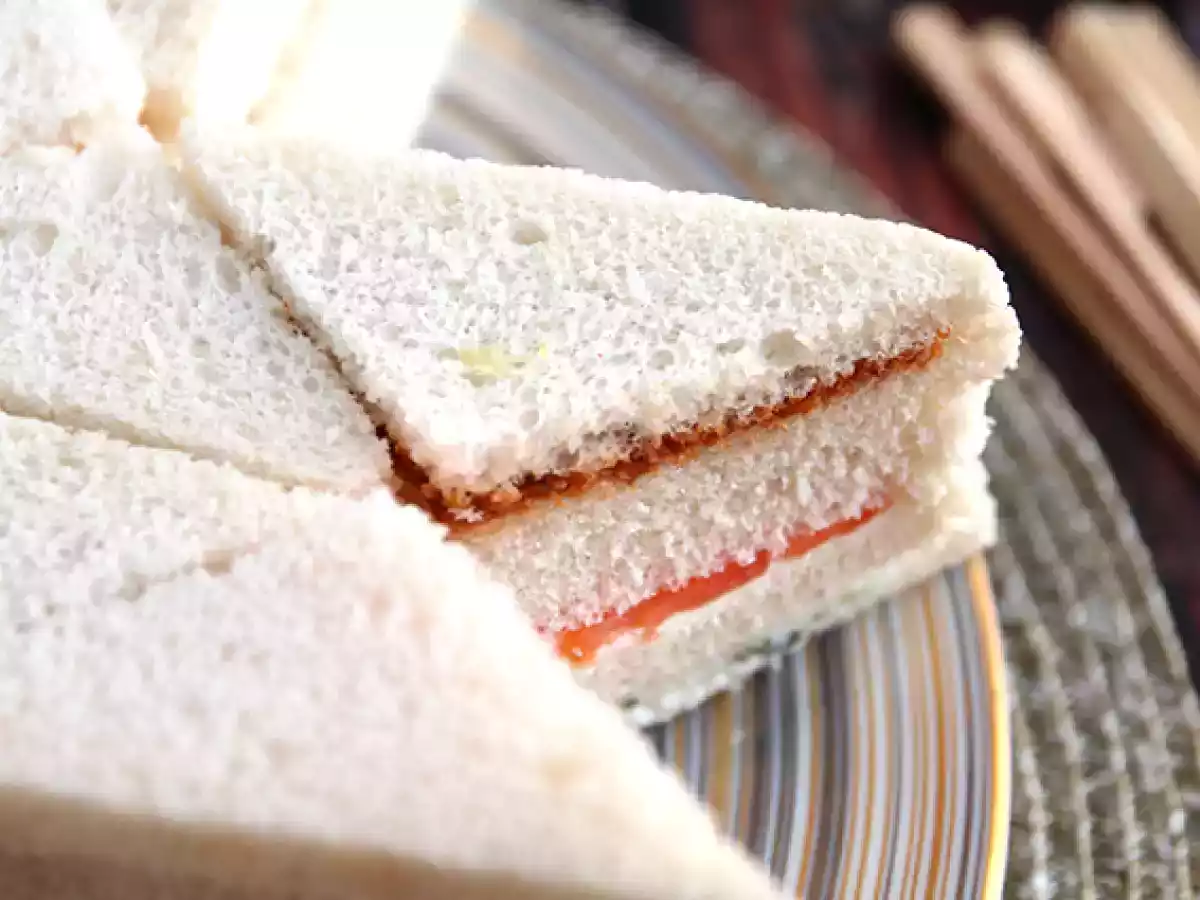 Spalmate l'hummus (vedi ricetta sul nostro sito) su una fetta di pane per tramezzini. Poi coprite con un'altra fetta vuota.