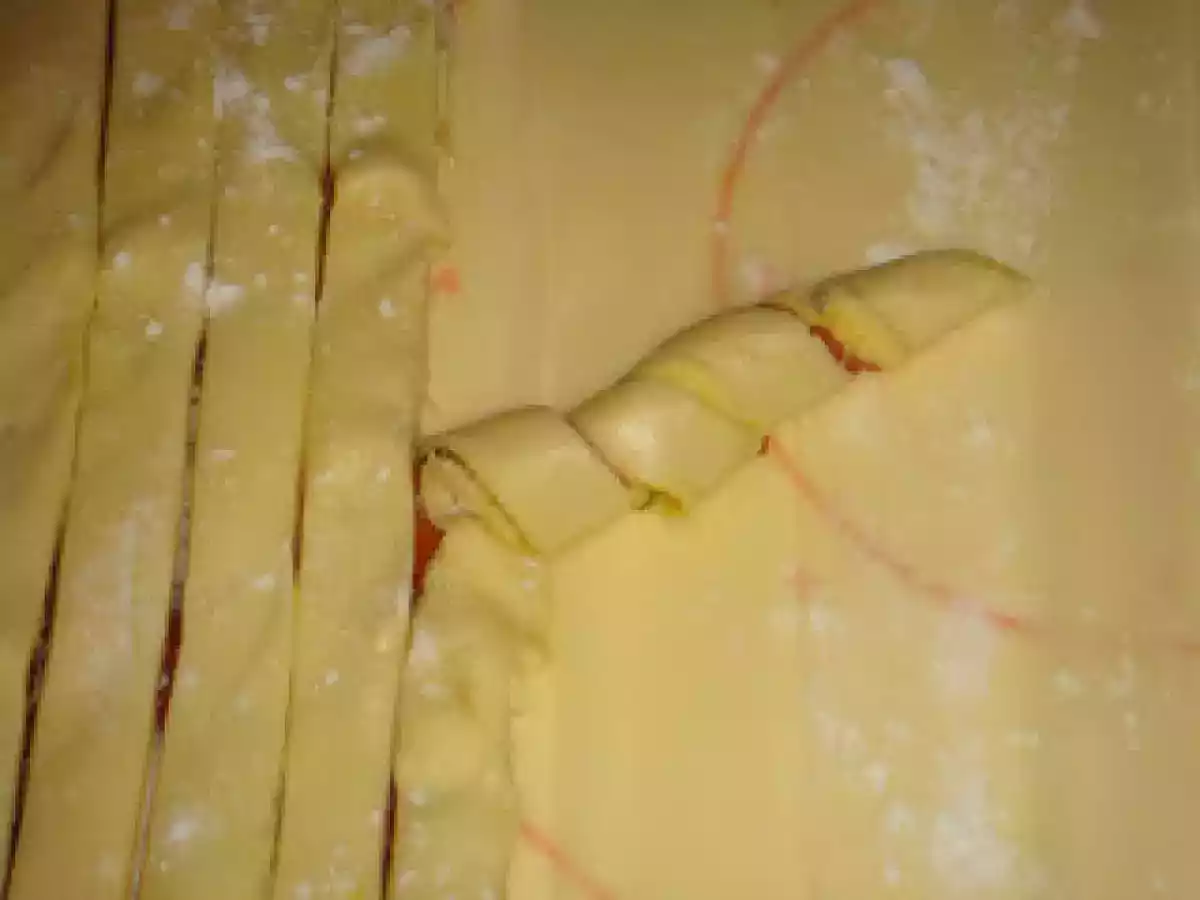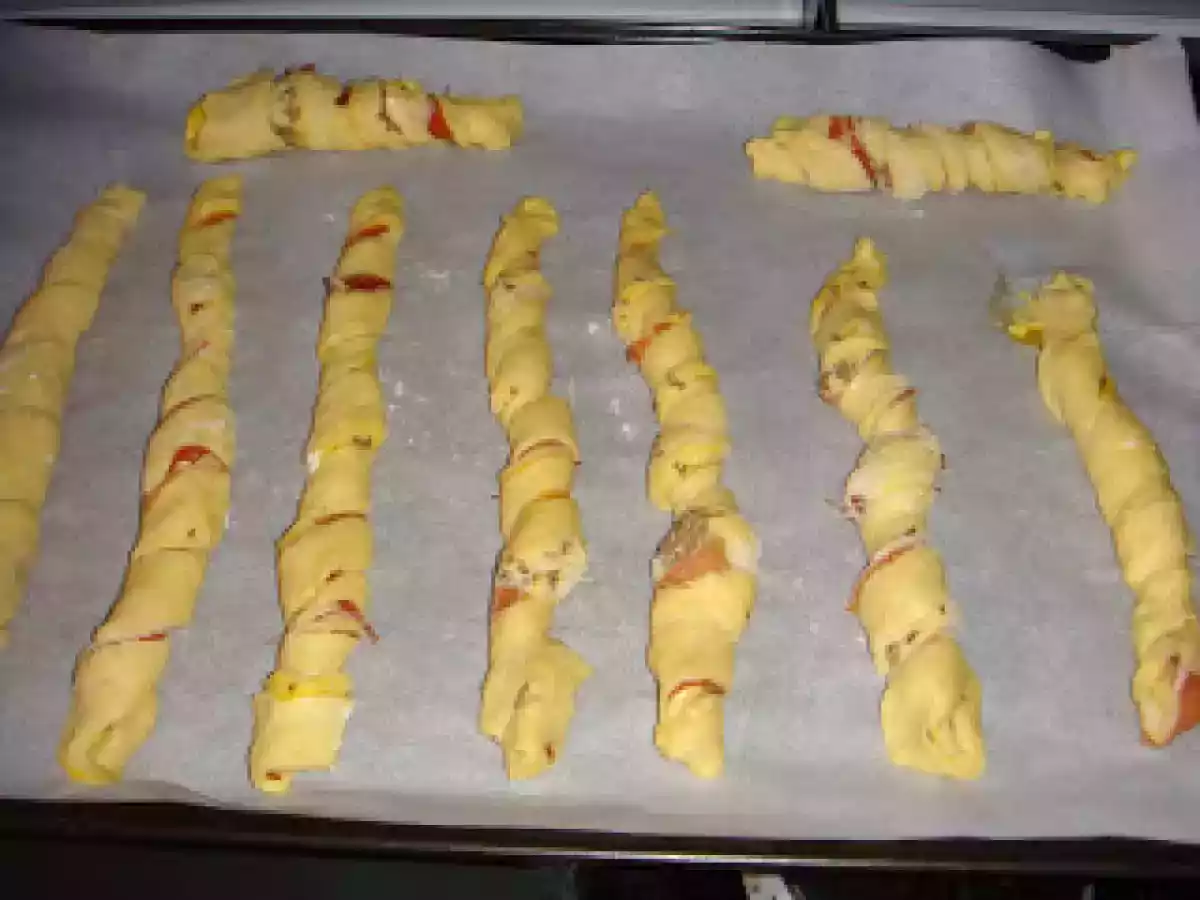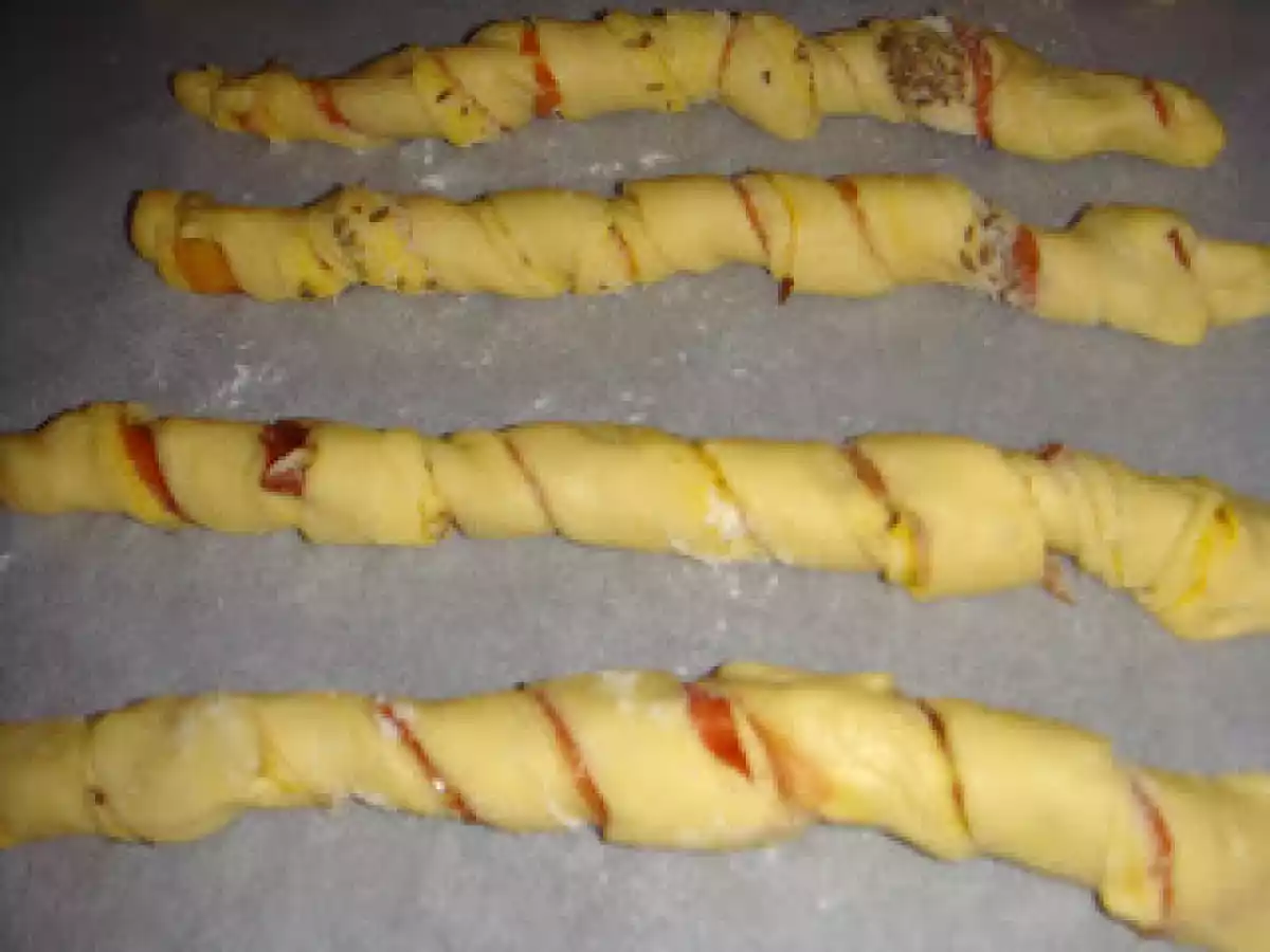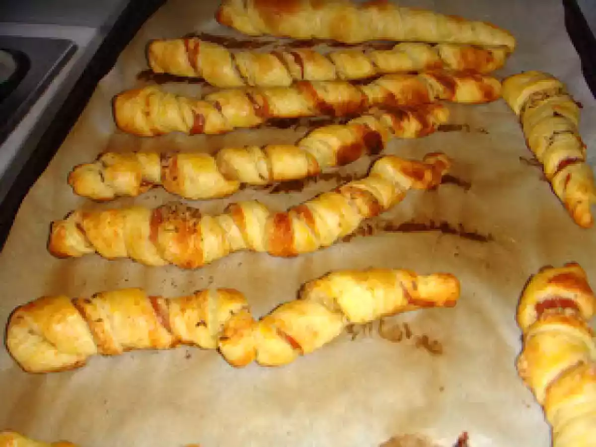 Torciglioni di sfoglia e speck PrecedenteProssimo Stuzzicheriefacile40 min Invia questa ricetta ad un amico Stampa la ricetta Contatta l'autore della Ricetta Pubblica la foto di questa ricetta Queste piccole maraviglie faremo l'affare per un aperitivo alcolico. Ingredienti 4 un rotolo di pasta sfoglia 4 fette di speck formaggio semi di finocchio un uovo