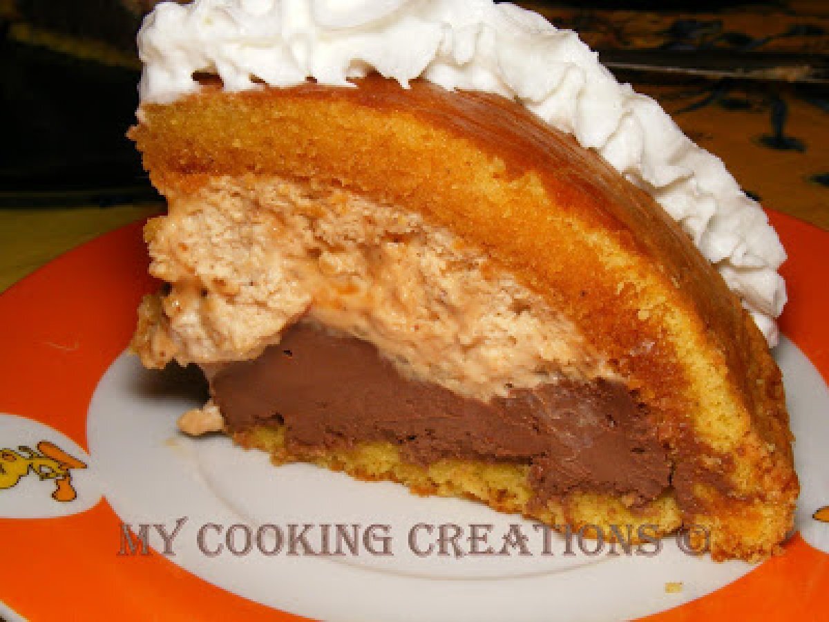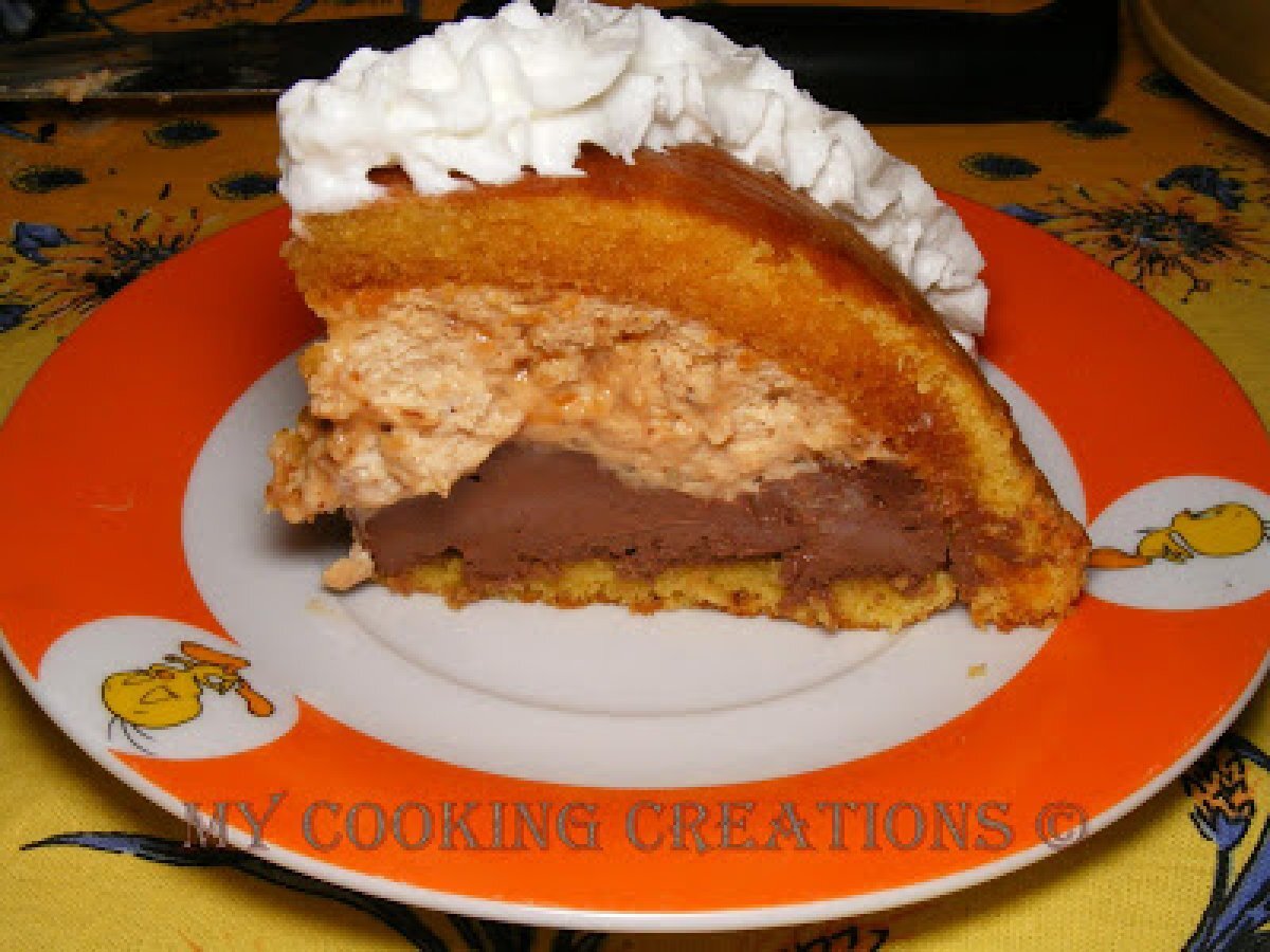 - Rifinire con un disco di pan di spagna spennellato di liquore e chiudere con pellicola. Trasferire in freezer per almeno tre ore. Uscire almeno un ora prima di servirlo e guarnire con panna montata e rose di cioccolato.