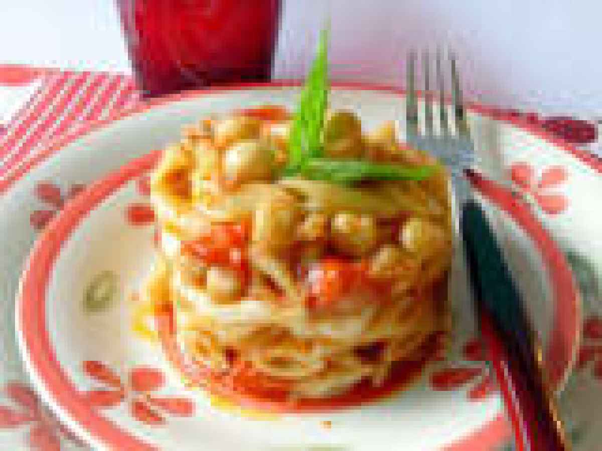 Torretta di mezze penne al tonno e ceci per la ricetta degli studenti